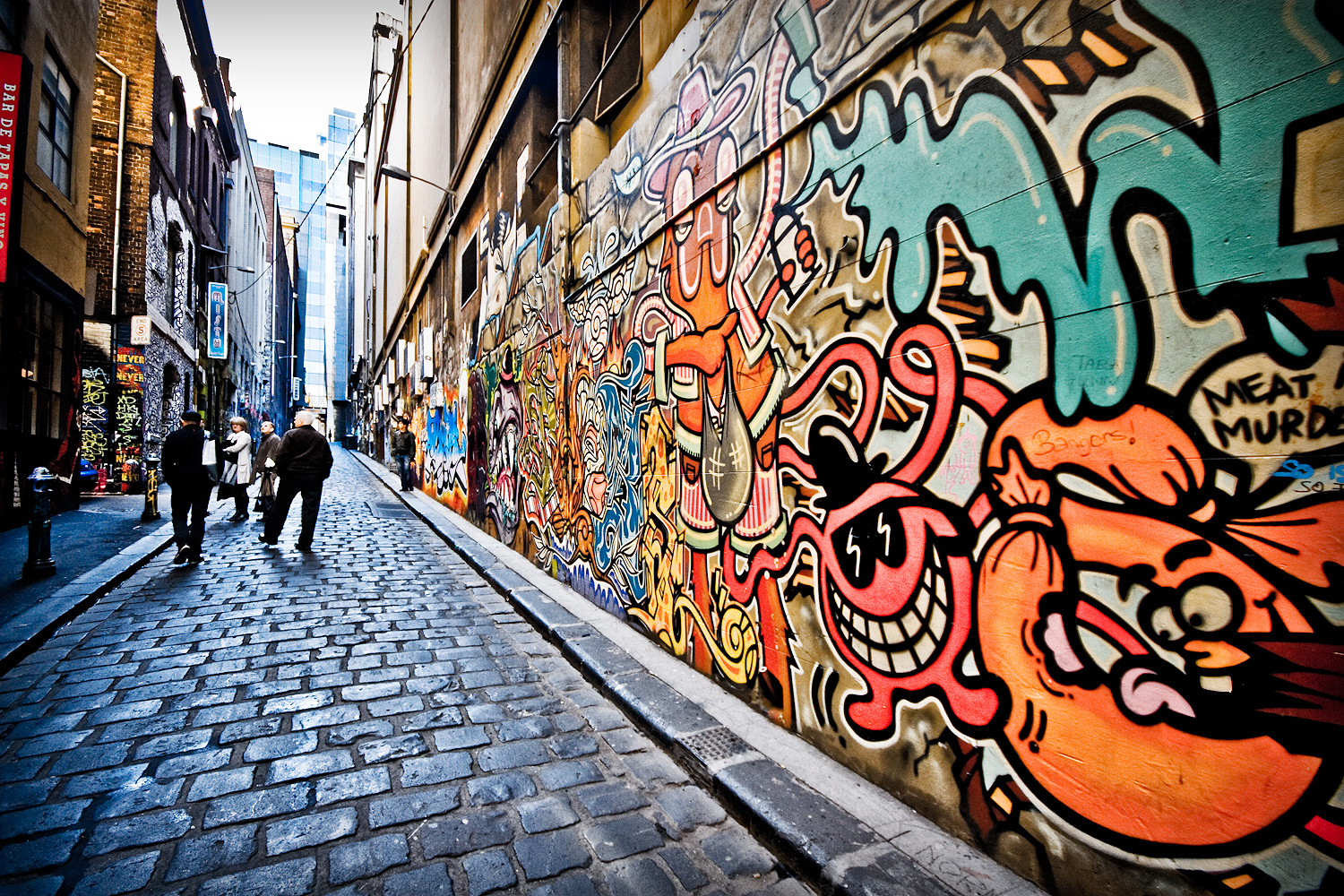 Melbourne's small alleys are often covered in street art, however are well kept and inviting, a fair few features cafes, bars and nightclubs. Image By Fernando de Sousa at Flickr. https://www.flickr.com/photos/fernando/