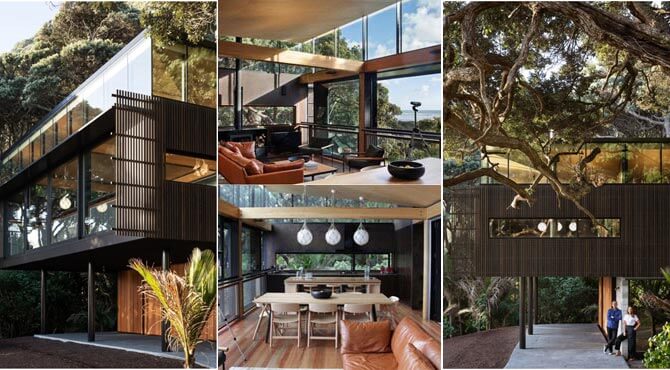 Even more unique, the canopy of the house is designed using Pōhutukawa tree – a type of tree native to New Zealand. In fact, the tree is often used as an architectural material. No wonder why the property looks very natural – because of the use of natural wood and other materials that go hand in hand with the surrounding landscape.