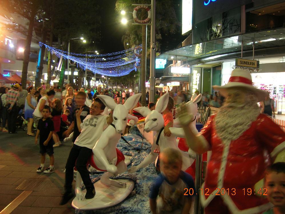 At night, I went for a stroll along the beach side road enjoying the light sea breeze on my face, with a full moon and myriad of stars overhead. The gold coast is very well decorated at this time of the year with colorful lights everywhere and the streets are very well lit. You can see people singing Christmas carols in groups and people doing various street shows to add to the bling. The streets were covered with Christmas lights and statues of Santa and reindeers. There were a few stalls by the beachside road, selling showpieces, eateries like strawberries, dried beef etc. A stall was there where could click pictures with a snake and a baby alligator hanging around your neck. It’s a must for the kids. The tourist count was high at this time of the year. People had come from all around the world to spend Christmas and New Year in this blithe place. To sum it up, this exotic place is at its culmination point at this time of the year.